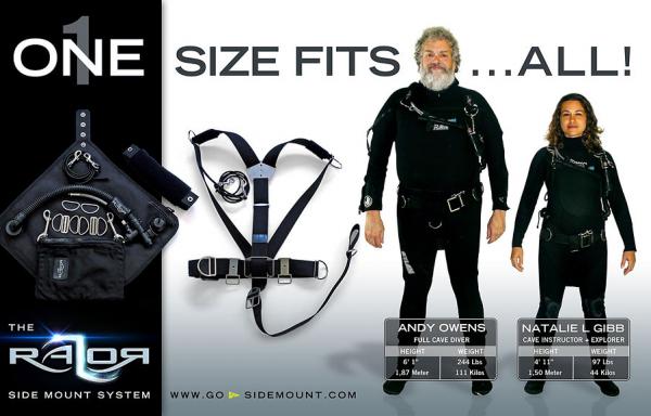 Just look at them side by side, even the instructors are 'any size': http://www.gosidemount.com/App_Themes/GoSideMount/header/header_razor_instructors_americas.jpg