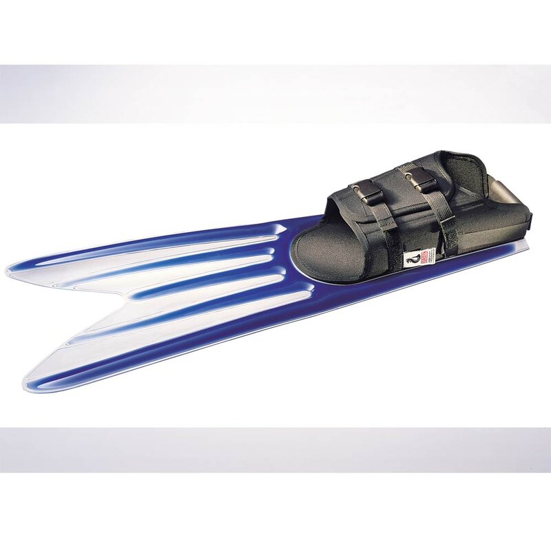 Force Fin. A unique manufacturing process. Weight is 4 pounds, and the foot pocket is adjustable (need to wear a bootie). A non-skip sole and they float—standard kicking for power in both cycles.