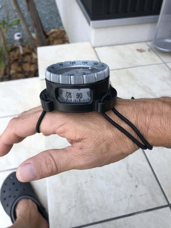 Suunto SK7 bungee mounted on my right wrist or clipped off on a D-ring (NOT on a retractor). I have 2 SK7s in bungee boots. One is rigged for bungee mounting on my wrist and the other has a bolt snap attached. Depending upon my gear configuration I will use one or the other. But I NEVER dive without one of them. I've had them both for well over a decade without any issues whatsoever.