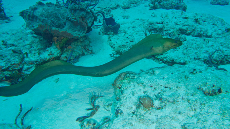 got attacked by a huge free swimming green moray at Cedral today. He hit my gopro so hard it is still messed up. Super aggressive.
