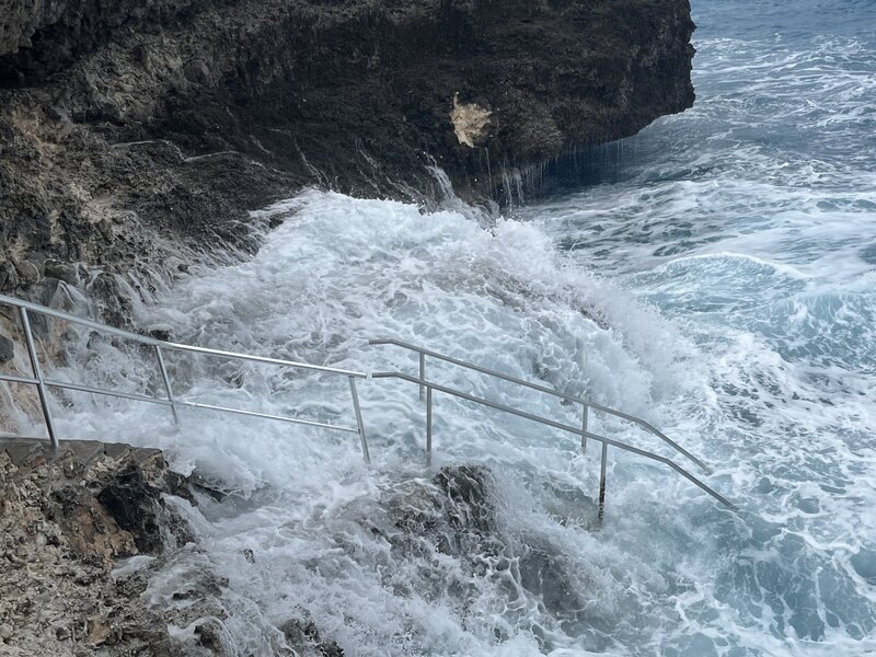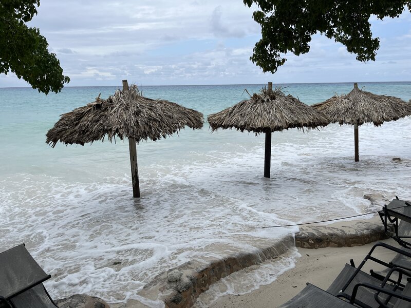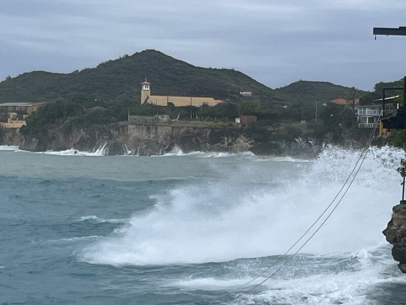 Staying at Marazul up in Westpunt. Last night there was a lot of wind and some rain. Around midnight the seas were pounding the seawall so forcefully that it kept me awake. Skies have cleared with no wind but sea is still crazy.