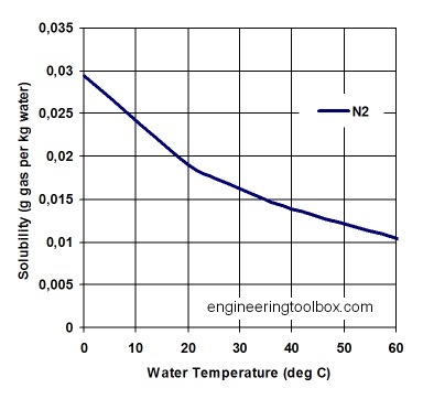 what's the reasoning for being warmer = higher inert gas uptake? Just from a purely chemistry point of view, gases are much more soluble in cold water than in warm water. I would think you want to be warm to slow your initial uptake of gas. While of course it is more complex, see this chart for nitrogen solubility in water as a function of temperature:
