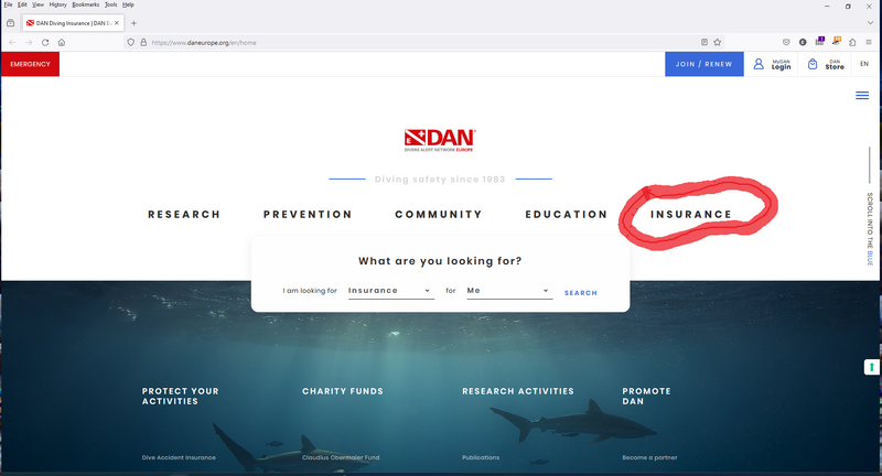 Can't speak for DAN Europe, however consider my employer is not an insurance company but our Human Resources Department has tabs labelled insurance on their web site.