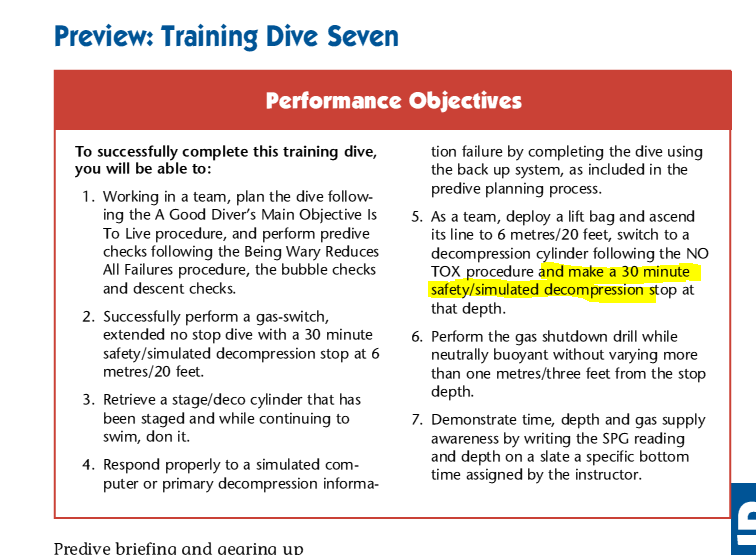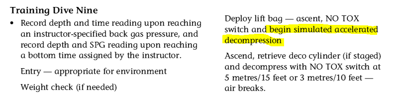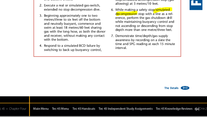 I have been pretty clear the the manual excerpts you are referencing are not the Tec 40/45/50 curriculum. This are for the Tec Deep and Apprentice Tec programs Which the manual was originally written for. The Tec 40/45/50 program is based on parts of the old manual with the handouts, study assignments, and knowledge review material you see linked at the bottom of the PDF page.There are 5 dives listed in the tec-40 section of the manual....dives 3, 4 and 5 ALL say simulated deco. If they are not a part of Tec-40, WHY are they in the Tec-40 section?? and I don't mean like the last page of it either.