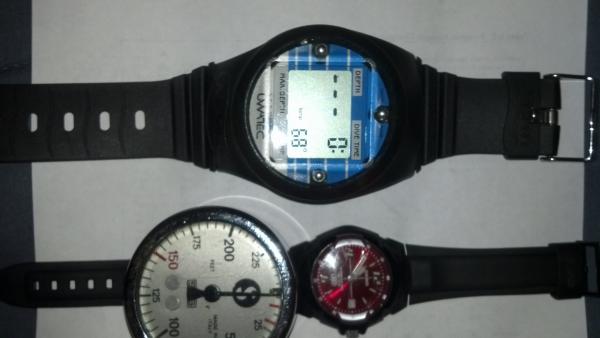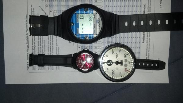 I have not had good luck with WallyWorld watches so I purchased an Oceanic B.U.D. for $200.00. I figure a good UW watch will cost that PLUS if my computer craps out I'll be going back to the dive tables, with the B.U.D. I'm still good to go on a computer.