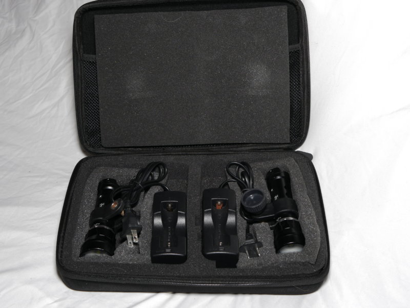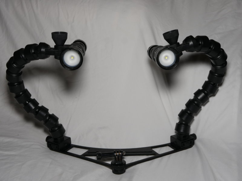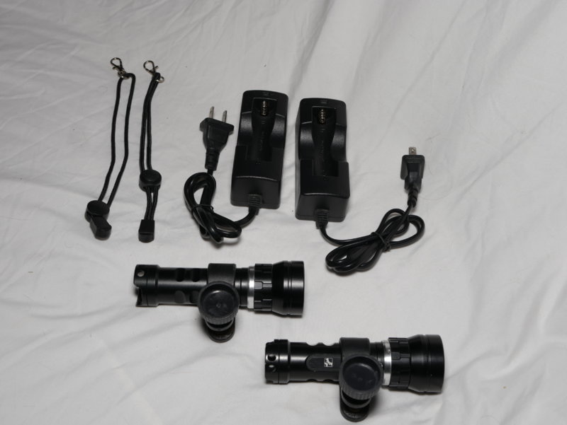 Selling a pair of DGX 800-lumen wide angle, video lights with tray, two YS mounts and two 10bar flex arms. Also includes two 18650 batteries, two battery chargers, two lanyards and custom case. These are a good set of starter lights for GoPro users that work well for portraits and macro. Selling for US$200 plus shipping (Canada and US only).
