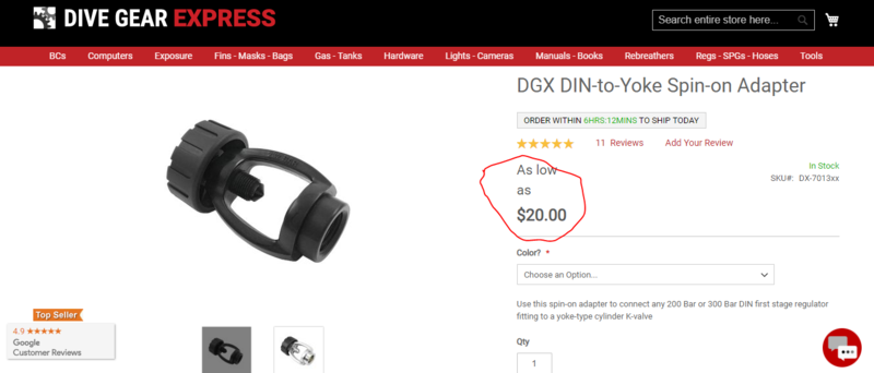Take a closer look at what else is available at DGX...I did say to avoid the $20. adapter...Poseidon and Dive-Rite...both sold through DGX have a superior version...I believe I mentioned that as well...