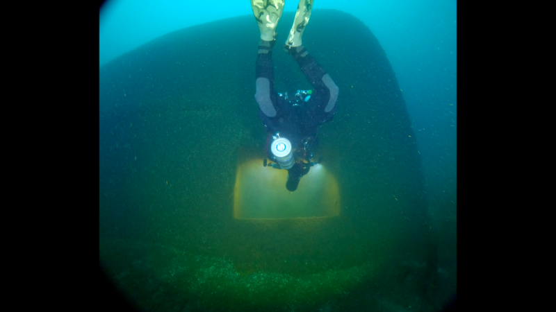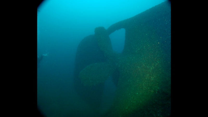 We did solve some mysteries though in the course of our dives. The Carruthers is much further south by nearly 80 miles from where prior efforts looked. Why did she founder so far down the lake? Through insurance claims and original newspaper articles, we discovered that the Carruthers was not bound for Georgian Bay like originally thought, but was bound for Lake Erie. We also discovered that she was missing both of her anchors which meant the captain tried to turn into the waves. Her massive cargo of wheat is rotting and shrouds the wreck in a yellow haze.