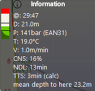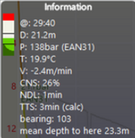 only by dragging the mouse along the dive profile and reading the data from the floating menu for the point on the dive selected