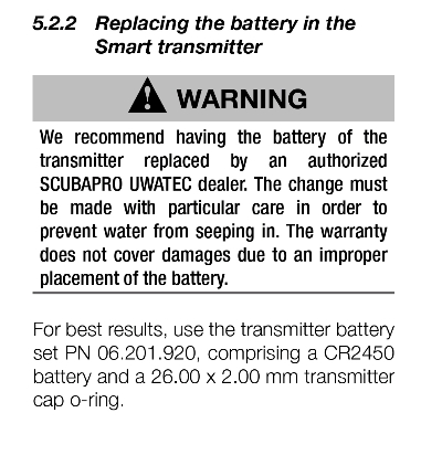 I'll check inside mine when I get home, but just so you know, those sizes are cross-section and INSIDE diameter. The OD's for those orings would be 30mm and 16mm, respectively. They may still be correct. Like I said, I'll open mine up next week and let you know. But the manual indeed specifies 2x26 for the transmitter.Looking for sizes on the uwatec transmitter and the Galileo sol/luna