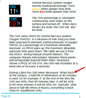Does it use the half life formula for periods which are not a multiple of 90 mins ?Re tracking of oxygen exposure, see this page from the Teric manual:
