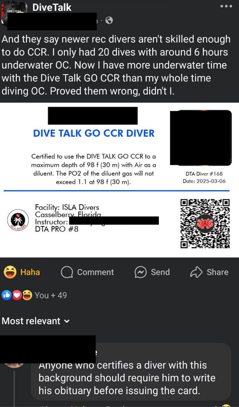 I've seen military personnel with absolutely zero OC experience learn to dive an O2 CCR in a day or two. Yes this is more complex but not abundantly so. I suppose we'll see how the statistics pan out.
