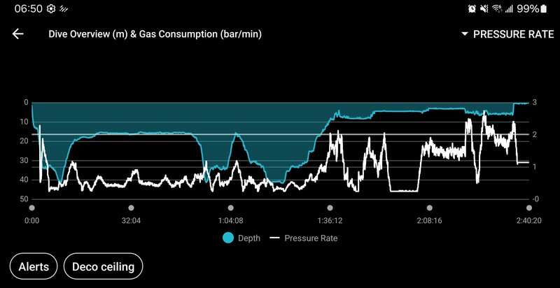 MY last Choptima dive was for 159 minutes at 90 ffw. According to the Shearwater NERD2 download I used 352 psi out of a LP 85. That is a bit less than 23 FT3.