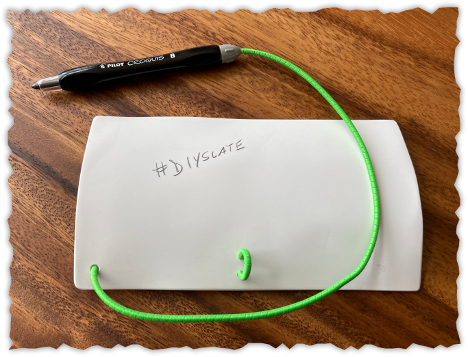 I wanted to tweak my slate after the last dive trip, and it was easier to make another from scratch, so I took some pictures while doing so. This will include good working (at the time of posting) source links for all parts, including for the much liked and hard to find Croquis pencil.