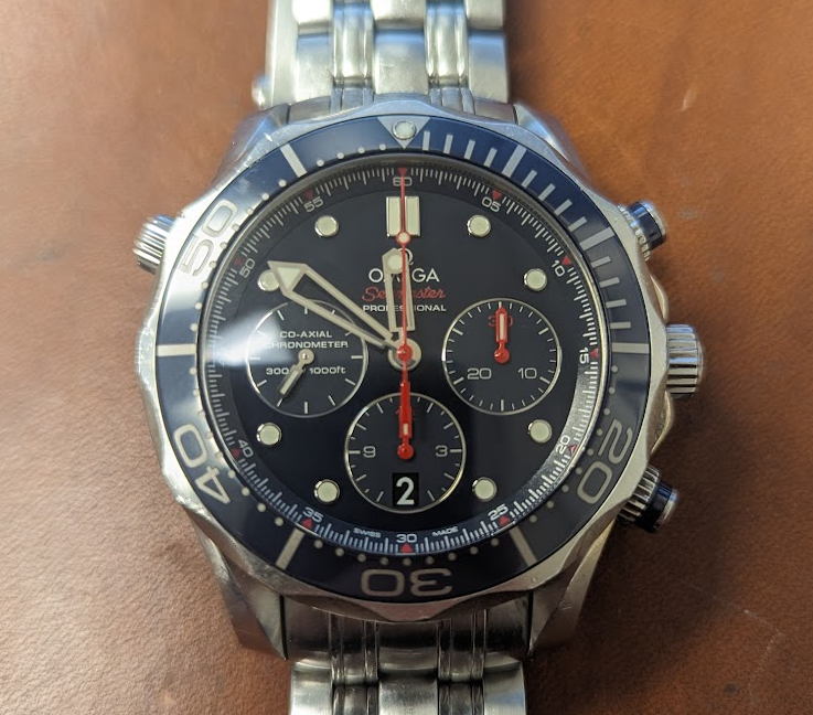 Personally, my Seamaster is on my left wrist for every dive and my Perdix on my right.