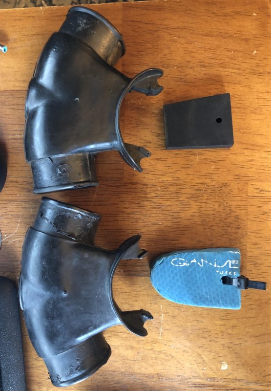 @lexvil reminded me that I have information for this thread, thanks to my new acquisition. A sample of a "flip flop" mouthpiece insert. Next to a factory insert. Noted that my bench could use a dusting.