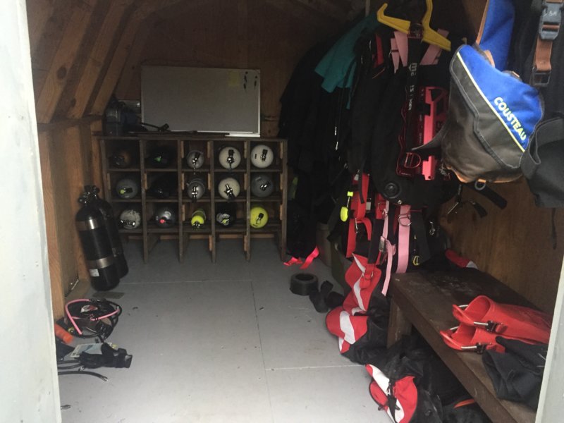 So ive been storing my gear in two separate rooms of my house and running out of space fast... I finally found a good deal on an 8'x12' shed and converted it to a scuba shed! My learning experience from this was that with recent heatwaves here in Ohio, the temputures got VERY hot in my shed. I was storing my drysuit in there, then went to go diving last week in a deeper/colder quarry. By the time I was 10 min into the dive i felt "squishy" and by the end of a 40 min dive i came out as a bag of water . With a closer look I realized that a significant portion of my seems waterproof tape was loose and stitching was exposed. Apparently my shed got above the heat rating for the glue...