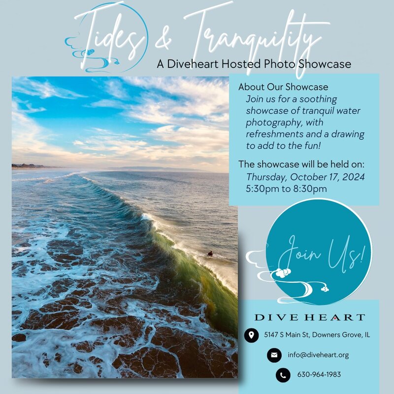 This Thursday: Join us for Tides and Tranquility, a Diveheart-hosted photo showcase that celebrates the beauty and calm of water!