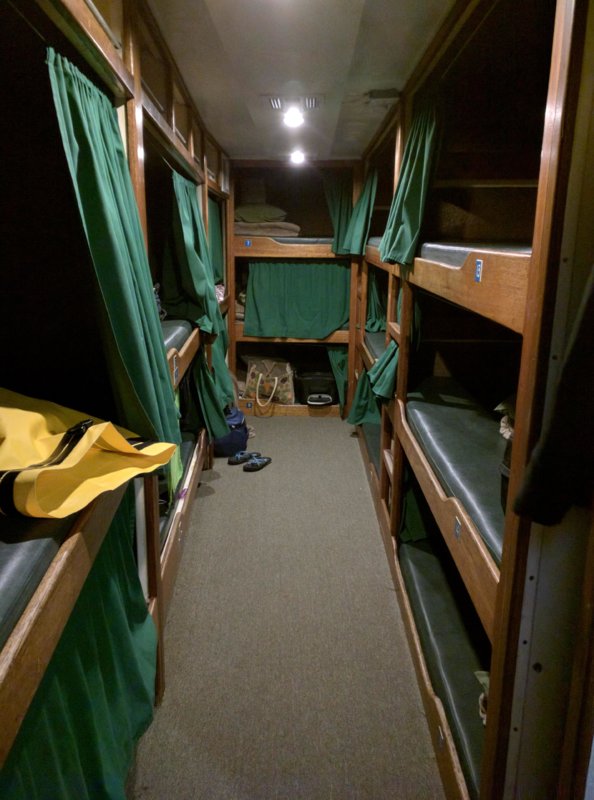 So regarding the rear bunks and no space between them and the last double bunks with the escape hatch, in this photo which was used before, you can see the bunks against the rear wall at the far end of this passageway....