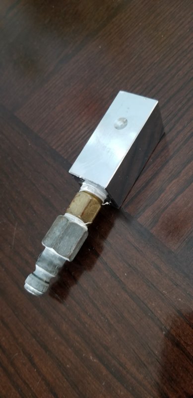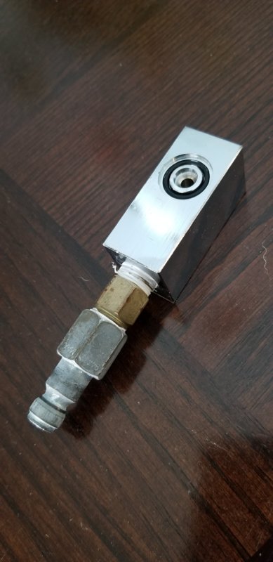 I'm with most... just dry our caps w/a towel after last dive. My daughter's is an Aqualung so less worried about that one. Mine is Deep6. Once home, I attach them to my large air compressor (w/air dryer) and blow them out (2nd Stages) and soak them in a tub (w/air pressure on). I just use a Scuba Port Converter Block (pictured below - front/back) to attach the 1st stage to it and attach to my air compressor. Easier than attaching to an AL80 tank to soak the whole tank w/1st. I don't have a pony... that might be easier. The Air Compressor approach seems to work good.
