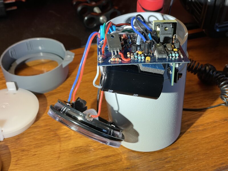 I turned the strobe back off, and waited for the capacitor to discharge to a safe voltage (checked with DMM) before putting the PCB back into the housing.