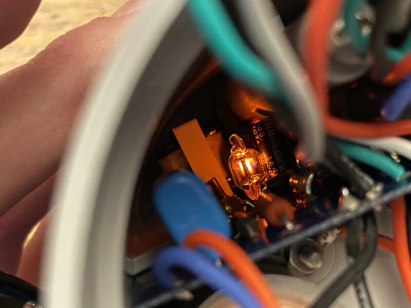 I inspected the housing. The knob on the back has a part with a slot inside the housing, that this small switch slots into. I figured what happened is during shipment an impact caused the PCB to slide forward in the housing (it’s mostly just friction fit), causing the switch to loose contact with the knob.