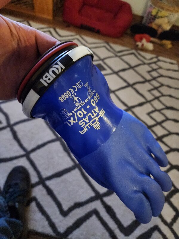 When reaching back to check the valve or follow a hose back from the reg, I'm really not feeling like I'm at any risk of popping a glove, you? Sure is nothing quite like the peace of mind of a interlocking twist... :cheers: