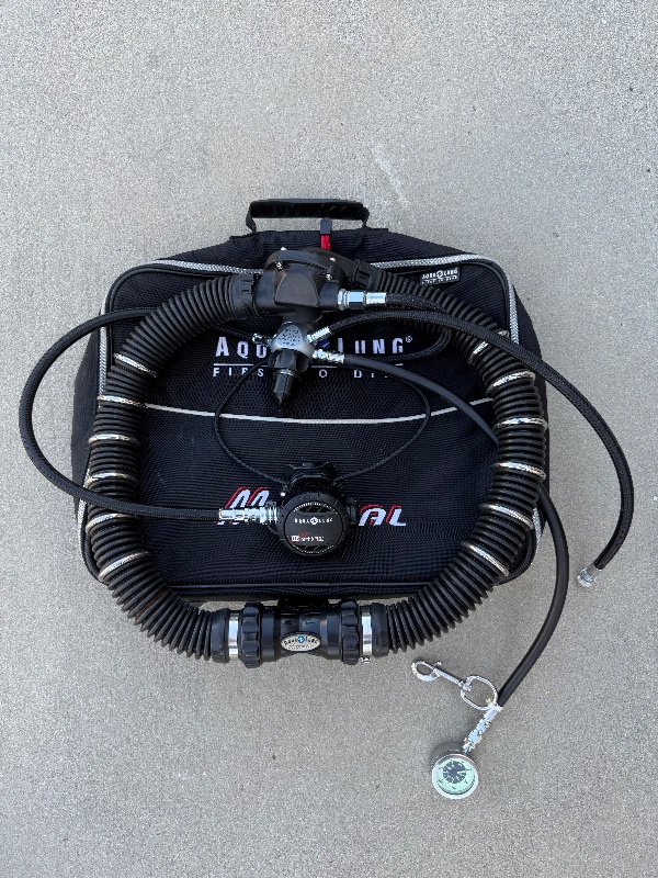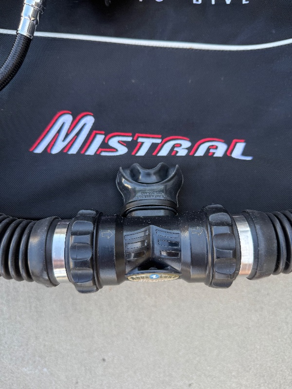 I have an Aqualung Mistral double hose regulator for sale. It has a DIN fitting which is rare in the US, has been professionally serviced and not dived since. It comes with: