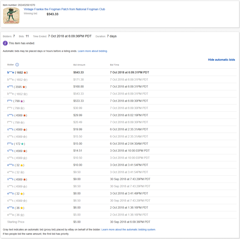 Or we could take it at face value, and assume that two bidders somehow got into a bidding war 6 seconds before the auction ended and that they both wanted to pay $500 more than what they should have needed to win the item.