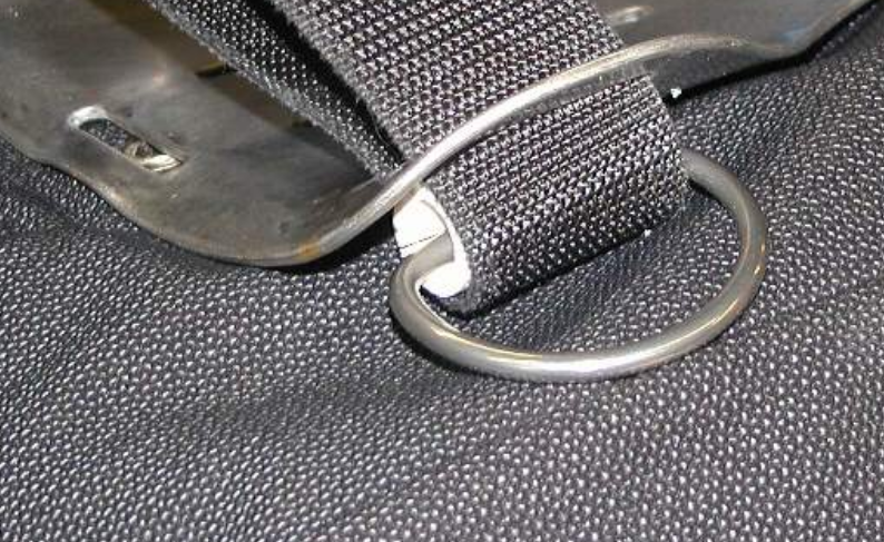 The red webbing supports a "rescue ring".