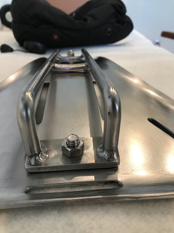 Yeah, you don't want to bolt the wing to the plate like that. The cam straps will pin the tank against those bolts with all of their force, and that will scratch and gouge the crap out of your tank.