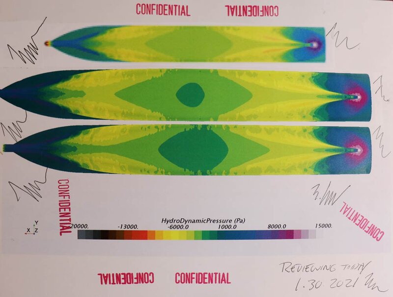Your 300M was obviously a displacement hull. Your buddies dive boat, If it had trim tabs I have to assume a planing hull. Is it equipped with a flow scan or the like?Thank you Captain. We started with passenger vehicles and did CFD studies https://lv9c13.p3cdn1.secureserver....MANCE-OF-AN-AFTERMARKET-VORTEX-STABILIZER.pdf. Being a marine person we then did CFD modeling on a 300 meter cargo ship hull. ( a three images of hull bottom are the same size, top hull no pods 2nd hull first pod spot and 3rd pods moved to other area.. ) We did a Pod placement on the Bulbous bow area. Not sharing the pattern. Saw some major changes and flew to Seattle to discuss in person, only to find out the firm had deleted the files. No joking. Was a real set back and did not pay the bill. I then went to a urchin diving pal and we placed a pod pattern on his trim tabs and on back area of the hull. Did did a run without pods (above post) and then with. You can see the rooster tail extending back from hull. As you know Captain their are so many variables on the Seas over road testing. But one trip to a surf spot he saw fuel savings. A dip stick. Each CFD runs cost over $10,000 and we need around $100,000 to really do the job. Our Patents also cover Aviation, since I did not want to make the same mistake I made with blended wingtips. Engineers - Force Fin. Anyway thanks for your interest. I am now working with this firm in the UK and they seem very hopefully on results. CFD Technology | Cape Horn Engineering | Yacht & Ship Design Optimisation Thank GOD Force fins are still selling well to cover my different ideas. Susanne and I are mainly focused on the Water project. Soon we will be making a major announcement. CHESS+EVANS LLC – Tools & Technology for Sustainable Water SupplyView attachment 758983