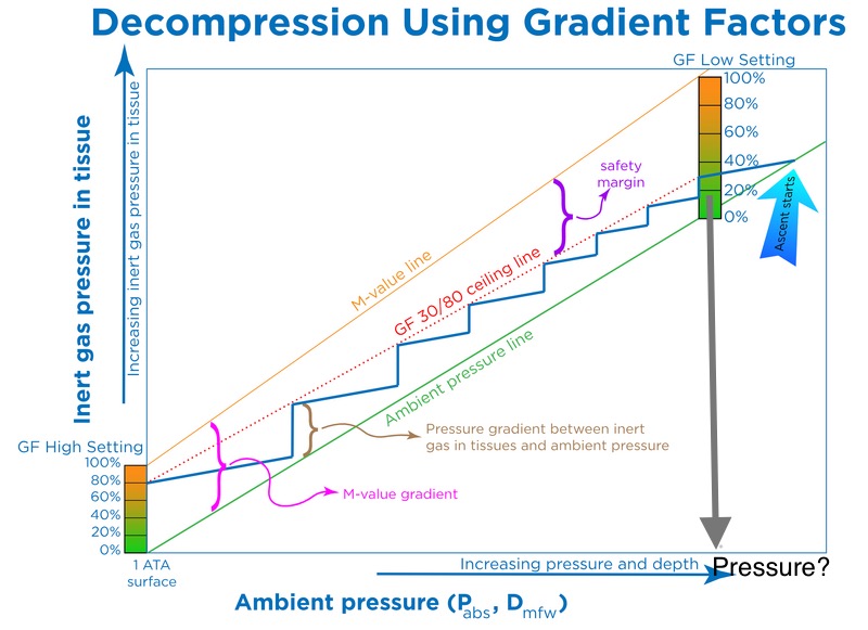 Can someone tell me at what ambient pressure GF Low is defined? For GF High it is 1 bar, but I don’t find any info about the ambient pressure for GF Low. It is important because that influences the slope of the gradient line. The higher the pressure for GF Low, the steeper the gradient line, right?