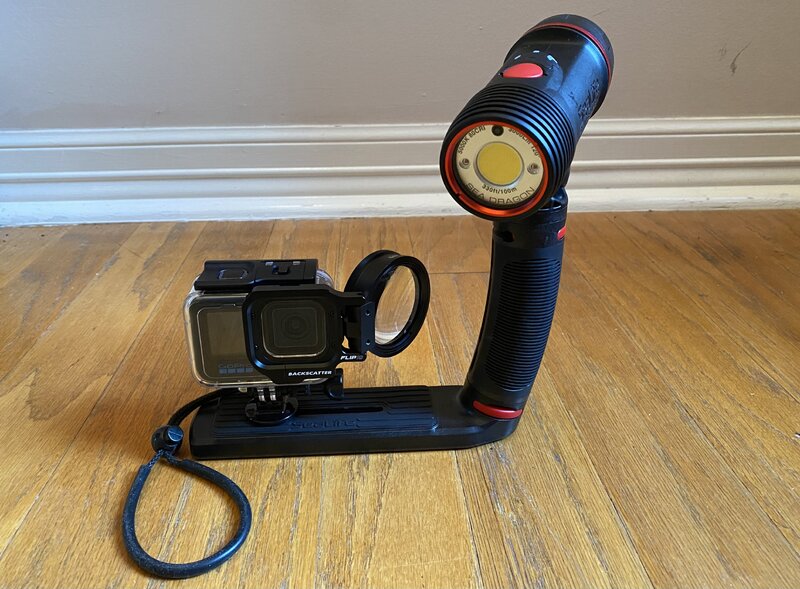 I like the SeaLife SeaDragob 3000 video light because, not only it’s bright enough for what I need with wide angle beam, but also it can be removed from the camera mounting in a single button press. I can hold and shoot the GoPro with my right hand and remove the video light from the GoPro mounting and shine the subject from the left with my left hand.