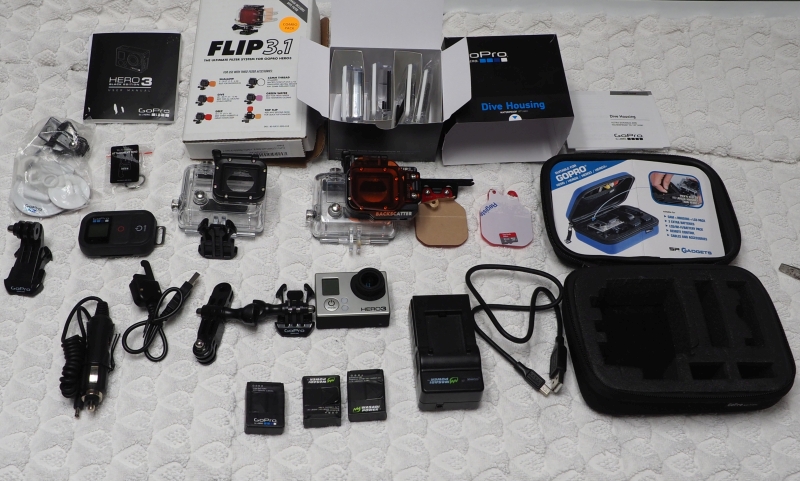 With the flood of cheaper alternatives, used GoPro values have taken a nose dive. I've tried to price accordingly. Package includes the premier filter system and the deeper "dive" housing. Everything in the picture is included. I wouldn't trust the batteries for more than 1 dive due to age but everything works, I've never had a problem or flood. I've just moved on. 64GB card included - it's ready to dive.