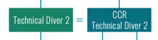 CCR2 is essentially similar to Tech2; you perform all the OC skills from tech 2 in CCR2 because you need to do bailout from your maximum depth, which you still need to learn if you aren't tech2, as well as manage bottle rotation. The equal sign indicates that possessing one of these ratings satisfies the prerequisites for Cave/tech 3 or cave CCR using the configurations you are certified on.Can someone explain this: