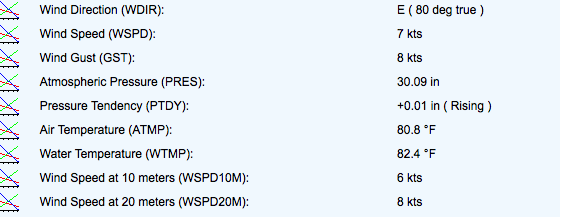 Lived here most of my life and I would say these conditions were not typical for this time of year. Normally, we see winds out of the SE at 10-15 with seas of 2 ft or less. Afternoon thundershowers, of course. This was a week long anomaly caused by a complex high that just hung around. More like March.