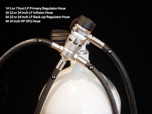 Hose routing question. Plan to dive with the 5th port facing down. My current routing (rebuilt last night) is for the long hose back right. Necklace front right, bcd and drysuit hoses on the left.