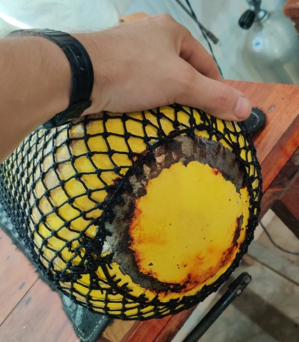 That one hole at the bottom of the skin tight boots used on OMS Faber tanks isn't for draining water, it's an air hole so the boot will slide on. Those glove boots being that they were a full contact snug fit were never designed to drain like the veined boots that have ribs inside. Drilling a million holes in the bottom won't cure it, it will just rust wherever there's no hole, like on the sides.