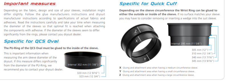 I just checked the gluing guide (attached to this post) for the Si-Tech PU rings (the base of their systems)....the diameter of the PU rings for for the QCS oval system is slightly tapered at 320mm at its narrowest and 320 at its widest points. The Quick Cuff PU rings that you have are designed to be glued in different ways depending on the size of the sleeve of your suit but for gluing inside the sleeve there is a section that tapers from 305mm to 310mm.