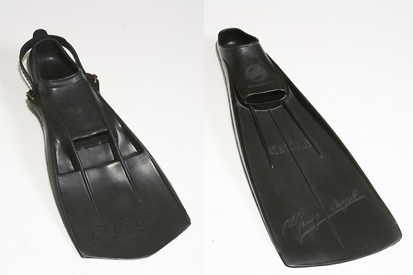 The fin on the right is the latest reincarnation of the Mares Concorde from the 1970s. More fins by the same Turkish manufacturer on their site: