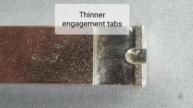 At this point, the next challenge revealed itself: the curved lever, even when fully depressed, got in the way of engaging the feet. So I ground a bevel in the back side to accommodate the lever: