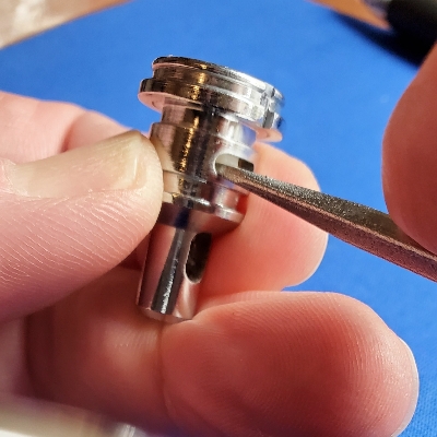 Replacing the orifice requires careful, symmetric downward pressure on the knife edge with nothing harder than your thumb. Resurfacing this knife edge will be discussed in an upcoming D-series restoration thread.