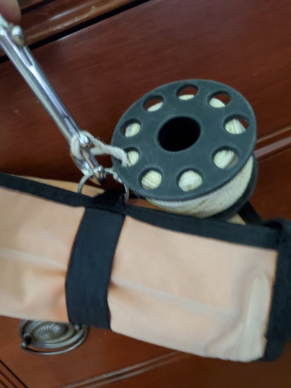 Modified "Blay style". Advantage I see here is by attaching the snap bolt to the DSMB, you are keeping the tension on the loop around the snap and preventing roll out. Previous "cave" version was better if you want to run a line. this seems very secure and way easier to deploy