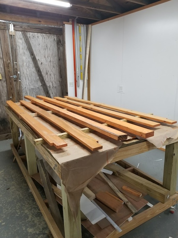 WOW making progress!!! looks better by the day....The basic interior of the workshop is almost done as I stained the trim by the large shop doors.