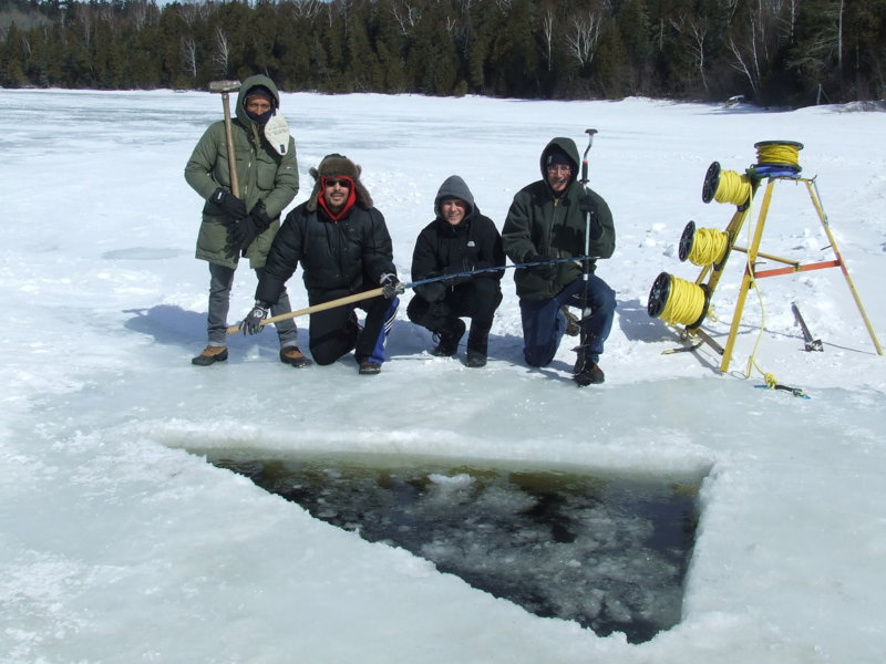 Line tending really sucks in freezing wind. Temps were below -20C at night and just really cold during the day. Constantly grooming the hole to keep it clear. Fine granular snow blows into the hole and initiates freezing. Constant grooming until we get divers in the water. Edges of the hole were rounding over, sure sign of subfreezing conditions.
