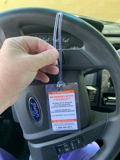 I took my printed out DAN membership card to FedEx Office and used their bag tag lamination to make a rig I can hook to my BCD. I started thinking about the whole, "what I'm found floating on the top" deal and figured this would be an easy way for someone to immediately identify me and also know to call DAN in an emergency, if I'm not able to tell them myself...