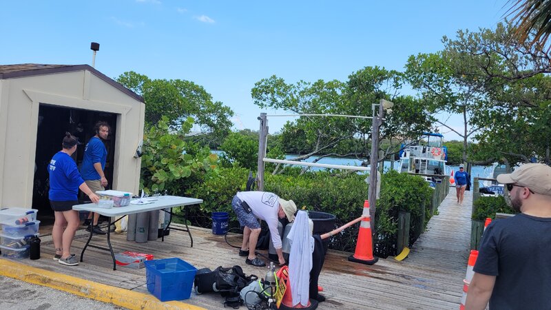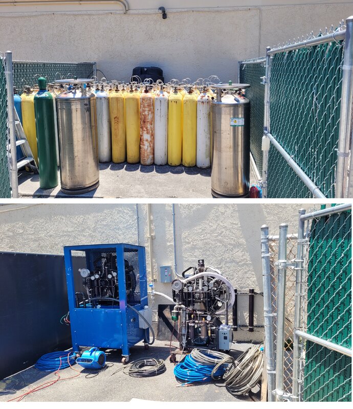 Air nitrox and '02 bank bottles ready, and Compressors cranking.