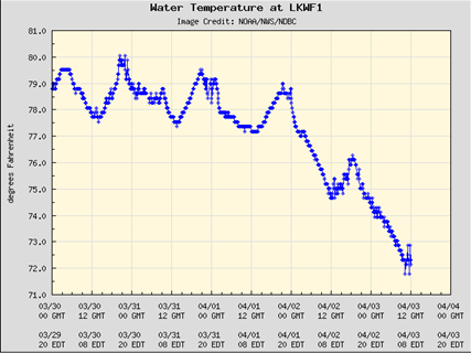 Looks like no diving today, if the predictions are correct. Looks like the water temp may have taken a plunge also