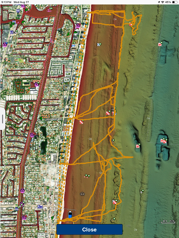 Calm seas with summer temperatures down to 25m. For Florida, visibility was down just a bit but I think it was still great. I try to never lose perspective of the dedicated divers in the Midwest who are happy to dive a river with 15 feet of visibility. What would those super dedicated divers think of our vis? Conditions have to be really poor here in Florida to allow myself to snivel and I prefer to just be grateful.